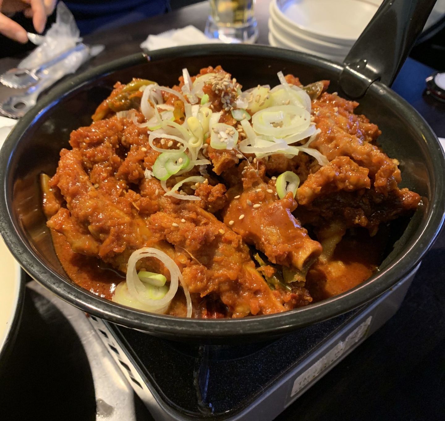 2021年にオープンしたばかりの新店舗で、夜の11時ごろに行ったにもかかわらず、満席でした!日本人だけでなく韓国人のお客さんもたくさんで、年齢層も幅広く、韓国屋台料理とお酒を思う存分に楽しんでいました。一押しはこちらのハンシン・タッパル(鶏足のピリ辛炒め)1880円。