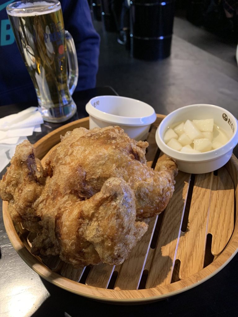 夜行で来てさすがに疲れてきたので、ホテルにチキンを持ち帰ってゆっくりチメッ(チキンとビールの韓国語メッチュを短縮した言葉)を楽しむことにしました。