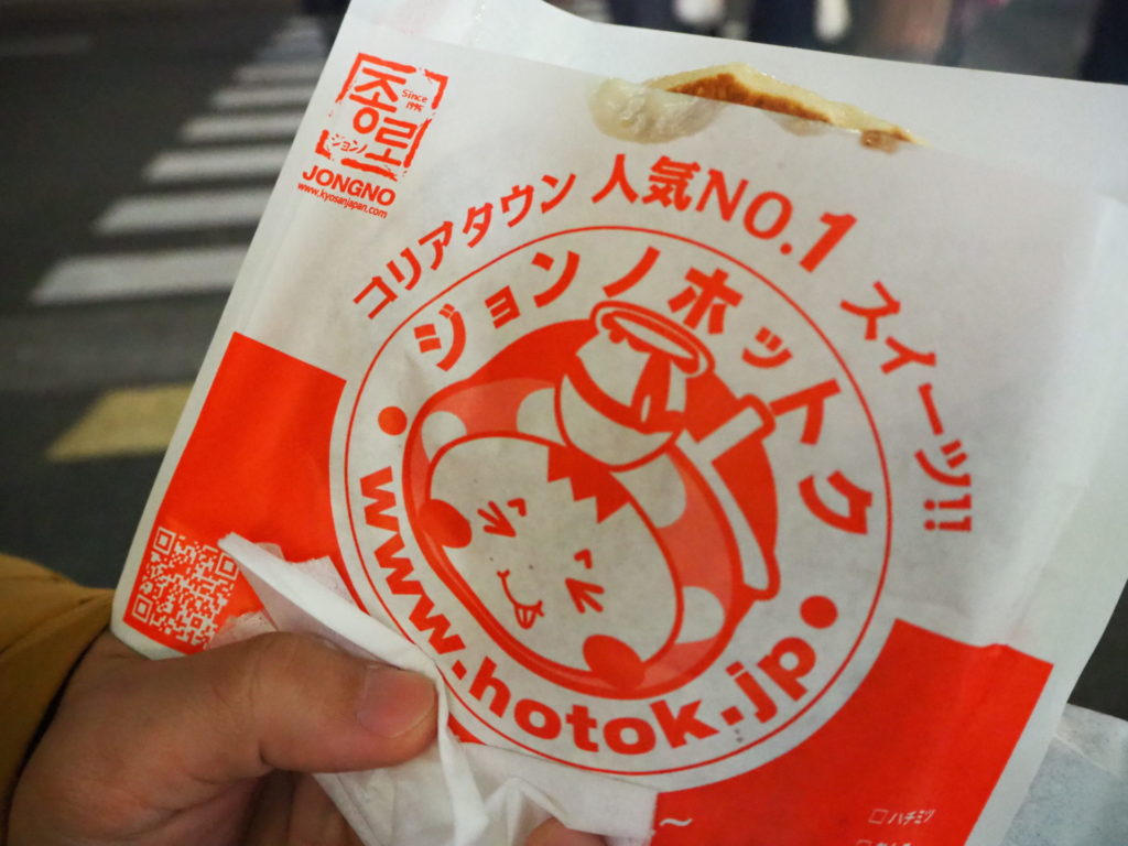 ややこしいですが、こちらはホットク。元々は中国の胡の商人が朝鮮半島に広めたお菓子だったそうで、それをホットク(胡ホ/餅トク)と呼ぶようになったのが由来。鉄板で焼いて作るので、日本のお焼きに似ています。