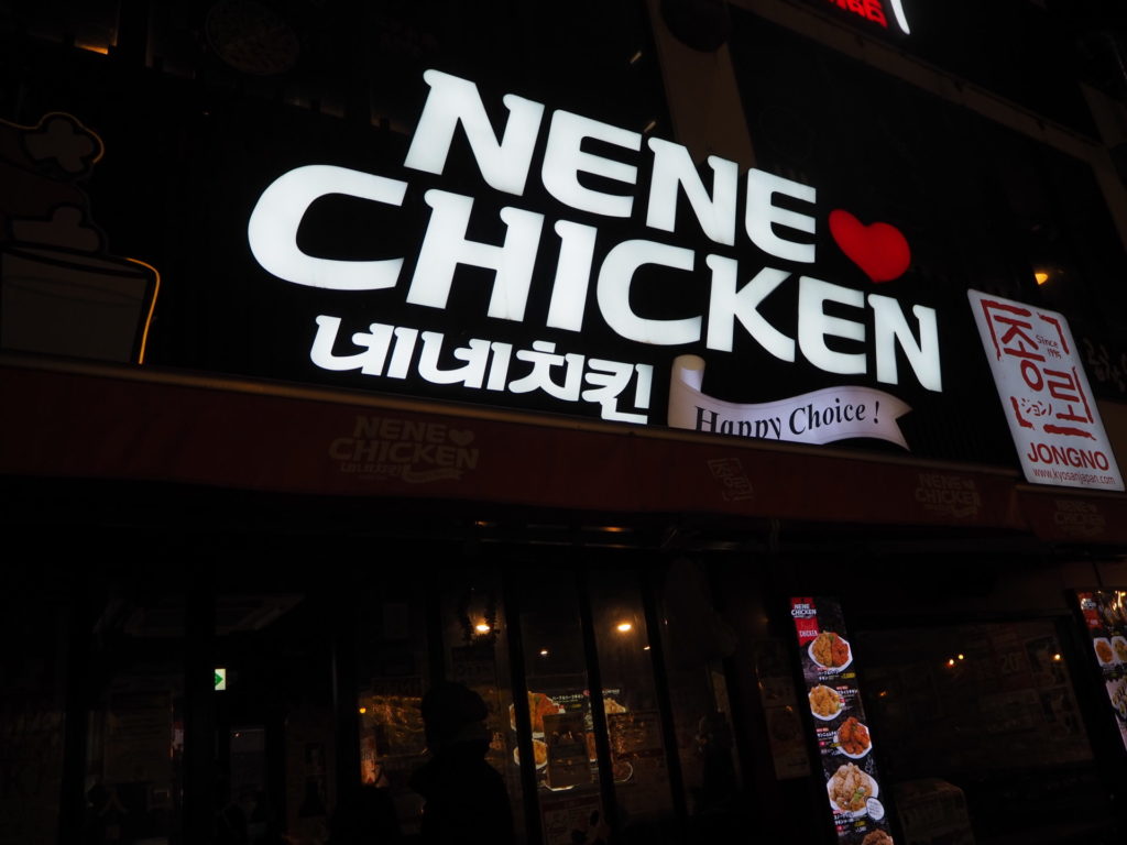 チキンは韓国でも超有名店だというNENE CHIKENで購入。ハーフ&ハーフ(2,680円)を店員さんおすすめの1番人気の二つ、ヤンニョムチキン&カルビ味チキンをいただきました。