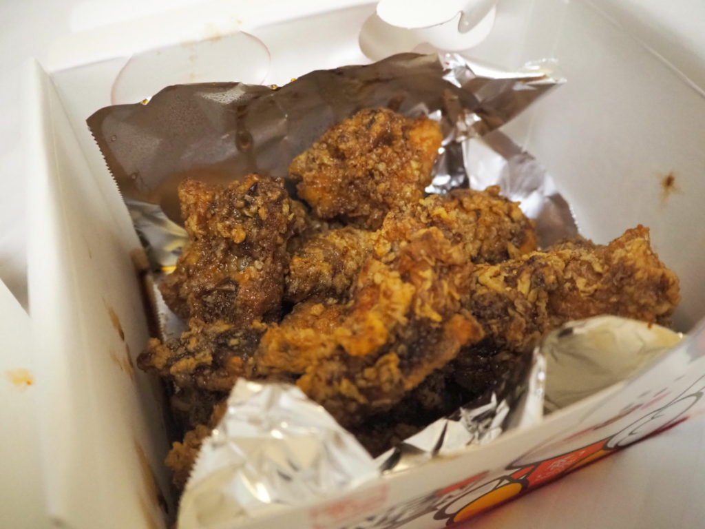 やっぱり機械で揚げたチキンは、時間が経っても衣がパリッパリでやっぱり美味しい。さすが専門店。
