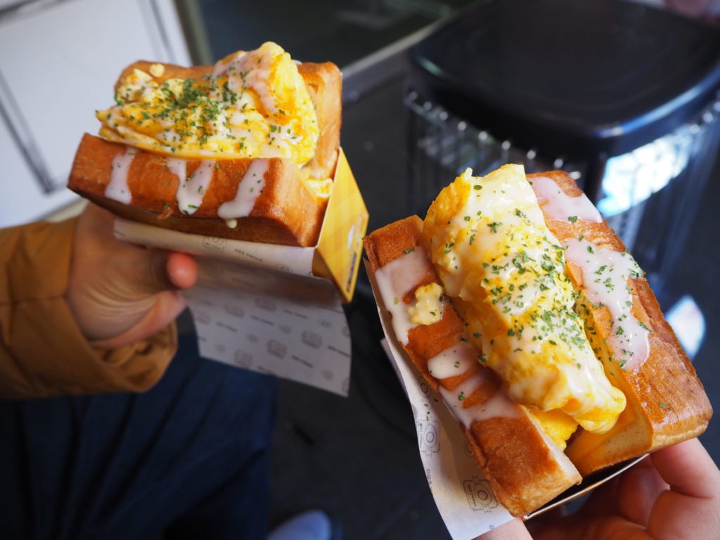 日付も変わり、コンディションを整えて、朝ごはんにはこちらも定番の、「トースト」をいただきました。韓国では昔から人気の屋台飯で、ご飯にもおやつにも食べられているそうです。最近また人気が出てきたみたいで、日本でもついに、オープンしたんですね!