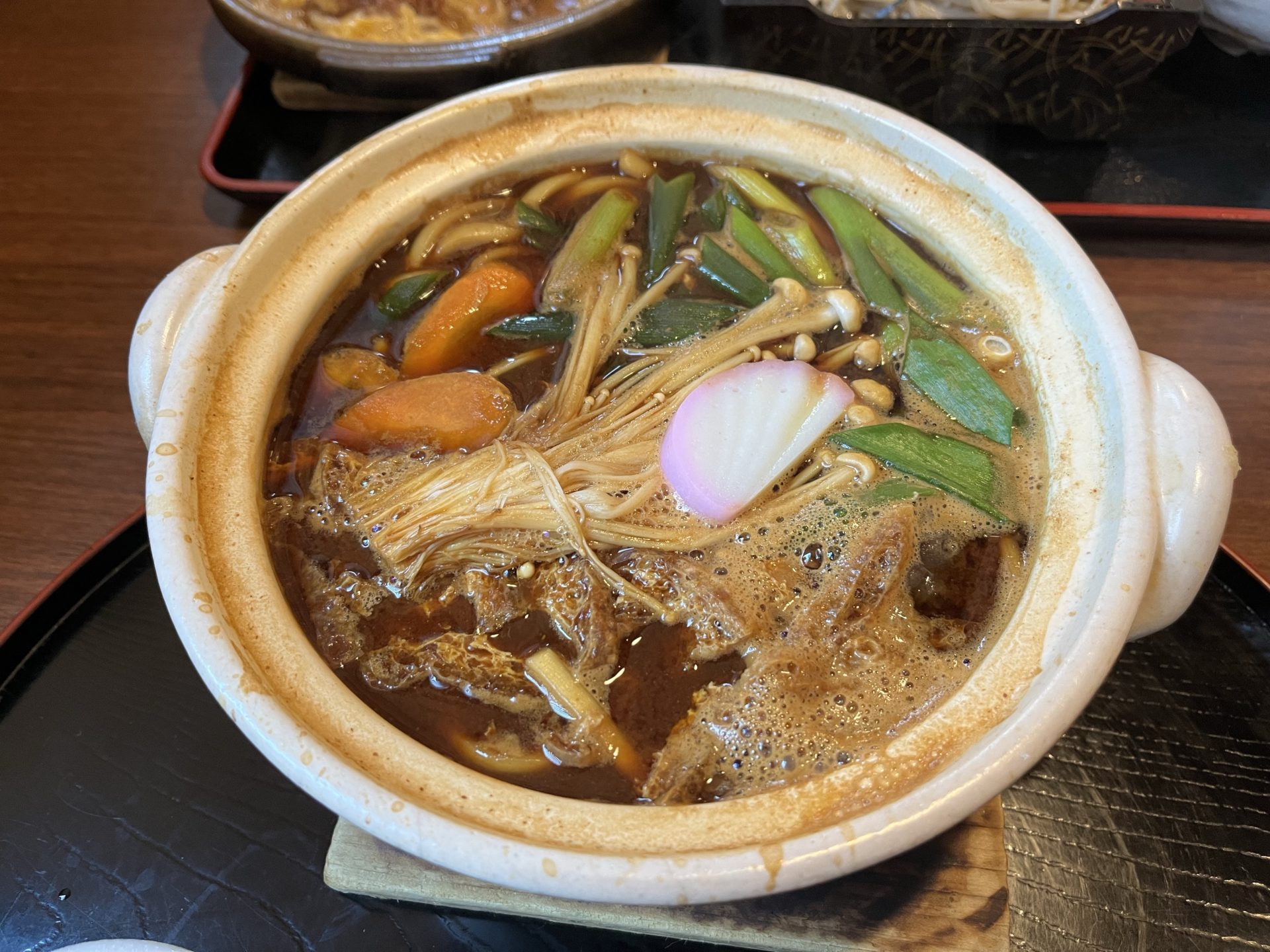 ぼくは味噌煮込みうどんを注文、ちげはかつ煮かけに蕎麦定食。