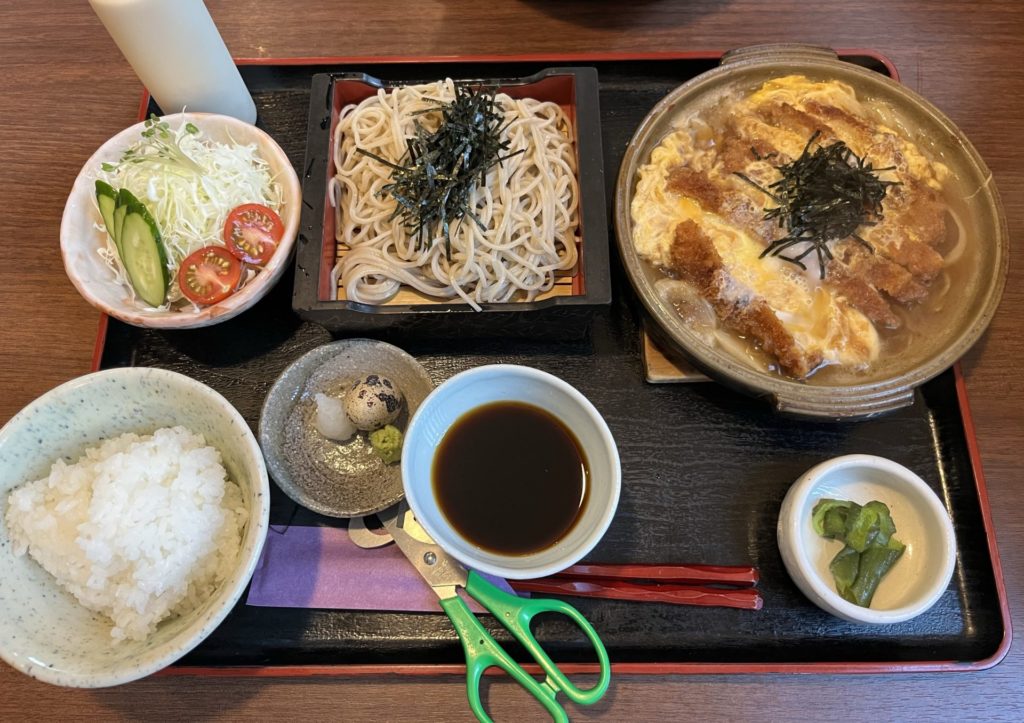 ちげのカツ煮は申し分なくうまい。にかけそば?という言葉が気になったので店員の女性に聞いてみた。すると具の入っていない温かいうどんやそばのことらしい。あ!!かけそばね