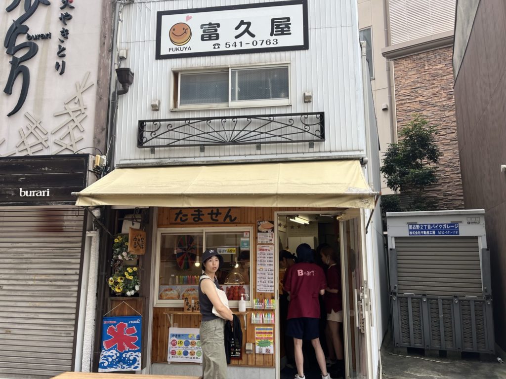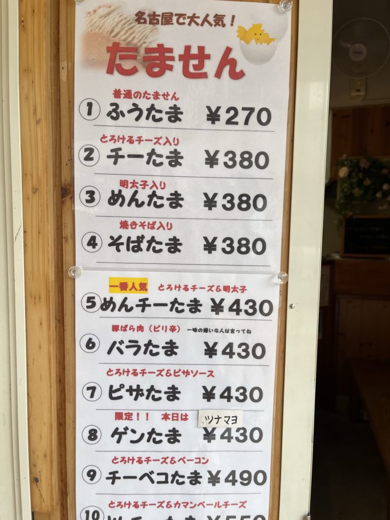 というわけでたまたま通りすがったふくやというお店で「たません」を食べる事に。こんなの